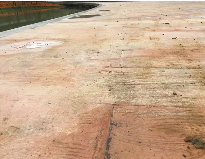 7.當(dāng)混凝土達(dá)到初凝階段時,在混凝土表面撒兩遍彩色粉,反復(fù)抹平,收光。
