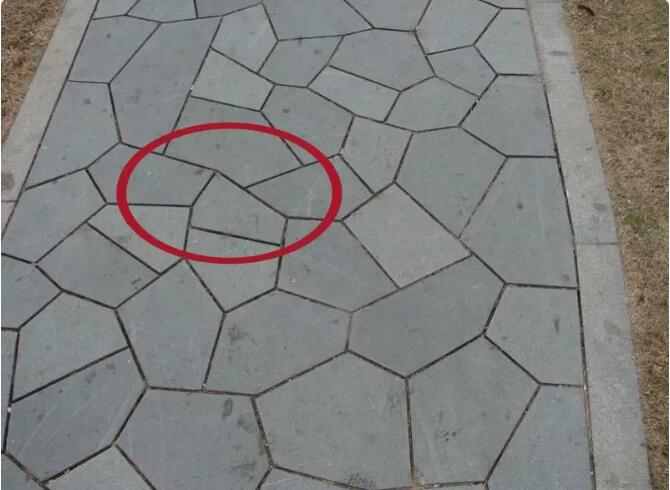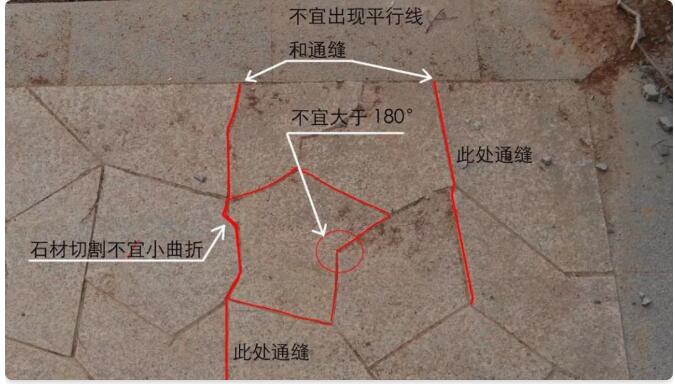 5. 石材鋪裝時應(yīng)大小搭配,縫寬以10mm為宜,用水泥油回縫,縫應(yīng)比石材面低2-3mm。