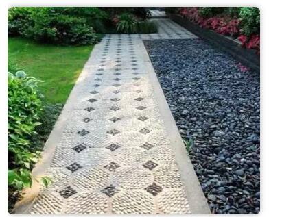 2.鋪貼前卵石應(yīng)清洗,單色卵石鋪貼要做到色差小。雙色或多色卵石鋪貼要選用色差對比明顯的卵石,有拼花圖案的卵石鋪裝應(yīng)在現(xiàn)場預(yù)排版。