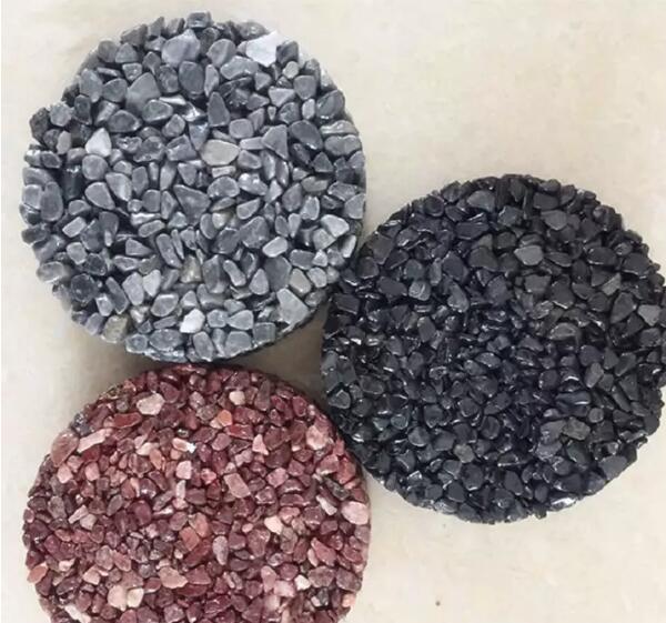 膠粘石由彩色石子經(jīng)特種技術(shù)膠合而成,原材料無毒環(huán)保、色彩自然、典雅大方,環(huán)保經(jīng)濟,是新一代石材替代品。膠粘石是以進口專用膠與天然彩色石子經(jīng)特殊工藝制作而成,具有堅固美觀、色澤自然、不易褪色的特點,它是一種新穎的藝術(shù)景觀鋪裝材料。