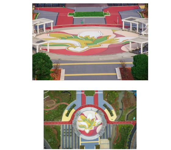 圓形鋪裝圖形完美柔潤(rùn),用時(shí)通過不同色彩的圓環(huán)鋪裝,給人以強(qiáng)烈的節(jié)奏感和韻律感。